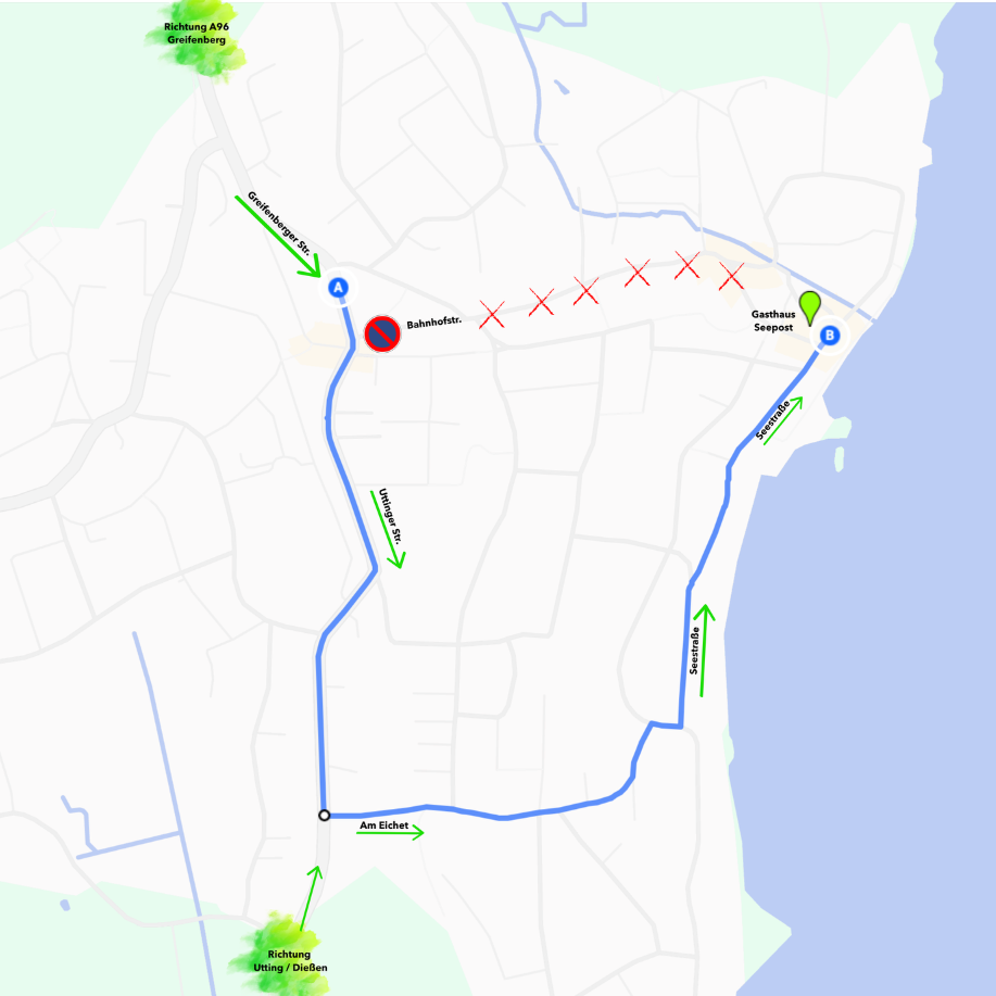 -> Uttinger Str. > Am Eichet > folgend der Richtung Seestraße